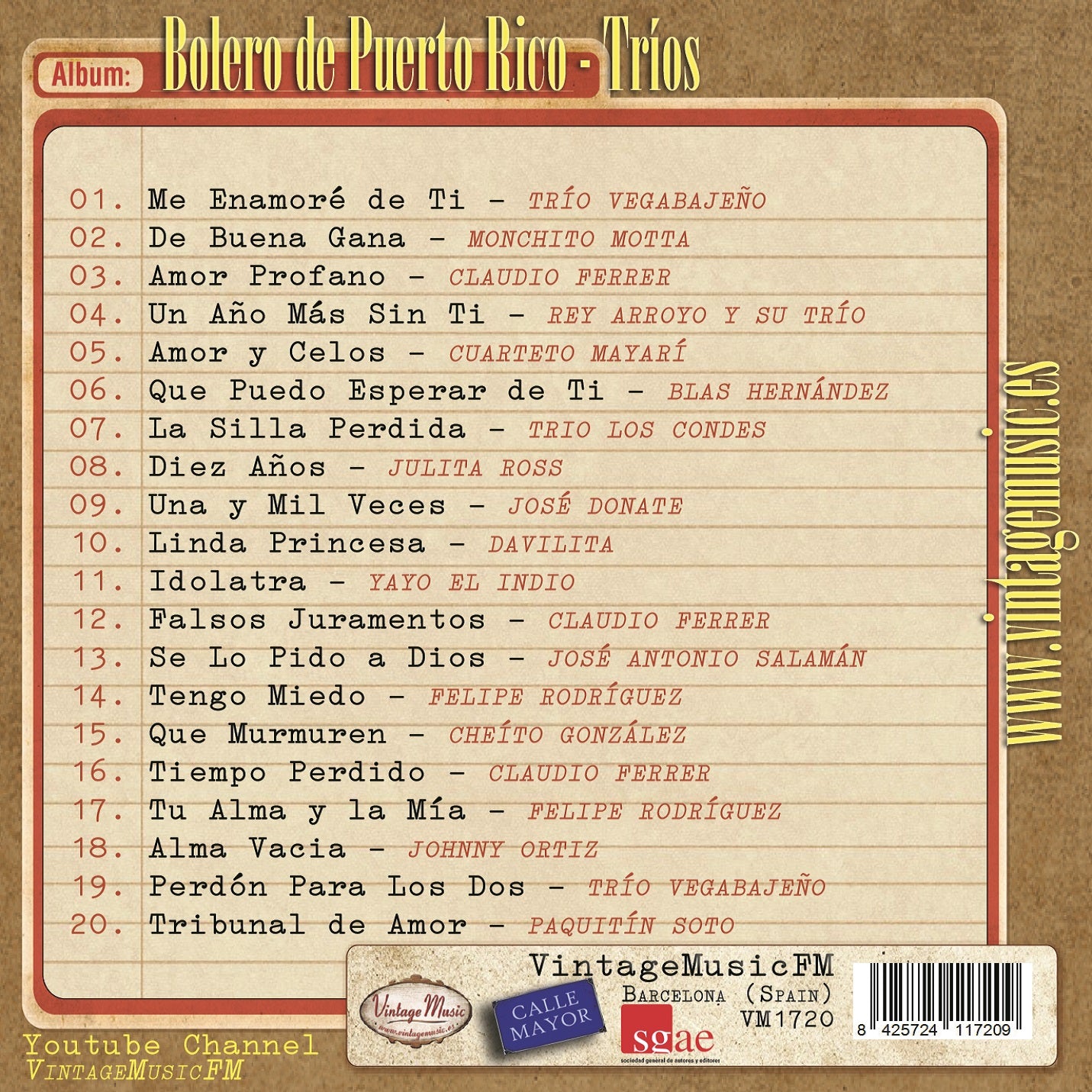 Así suenan los boleros cantados desde la isla de Puerto Rico. Nombres como el Trío Vegabajeño, Davilita o Monchito Motta ponen voz a los clásicos de antaño.
